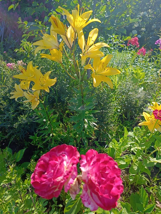 Виноград уже наливается, базилик красавчик фиолетовый, помидорчики и перчики растут..