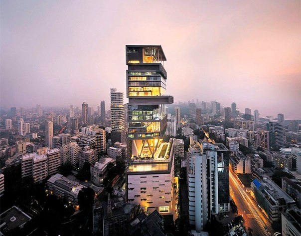 Самый богатый человек Индии, 53-летний миллиардер Мукеш Амбани, построил дом стоимостью порядка 1 миллиарда долларов. Это самый дорогой дом в истории. На строительство этого 27-этажного дома, в котором сейчас живет семья из шести человек, ушло семь лет.