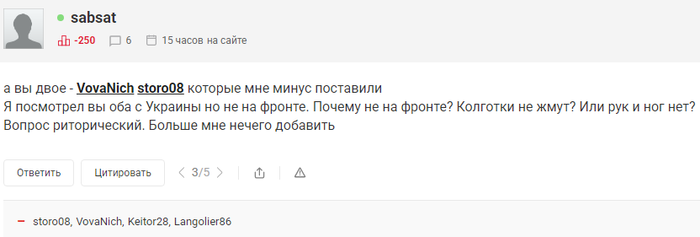 Если какой-то Васёк перед своим монитором сильно озабочен что он там поддерживает или нет (или что другие там поддерживают), то ничего положительного с ним не произойдёт. Человек просто дрочит свою психику в холостом режиме. Как правило (не на 100%) все лютые либералы (или ватники что та же самая хуйня по сути) это предельно неустроенные по жизни неудачники, которые ничего в своей жизни не добились. С копеечной зарплатой (или вообще без), без какого-то настоящего одобрения от общества (например в виде имущества). Они просто ищут уши (или глаза если мы про текст) чтобы выссать туда свою фрустрацию тем что они лузеры. Какая разница что они считают? Они же считать то не умеют :)