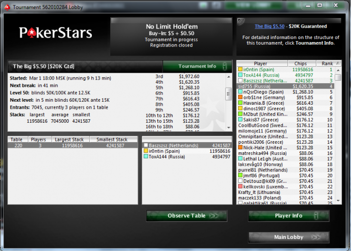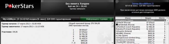 извините за оффтоп, но что за тролль придумывает пэйджампы на пс, то по 20% от обычных 14-16, то в этом турике вообще 8%... наверное обидно, что такие пэйджампы =( когда по сути за такое поле должен был получить в 2 раза больше. причем смотря на все это, за 8-9 места меньше чем в регулярных... 20x топ9 по сравнению в топ1...