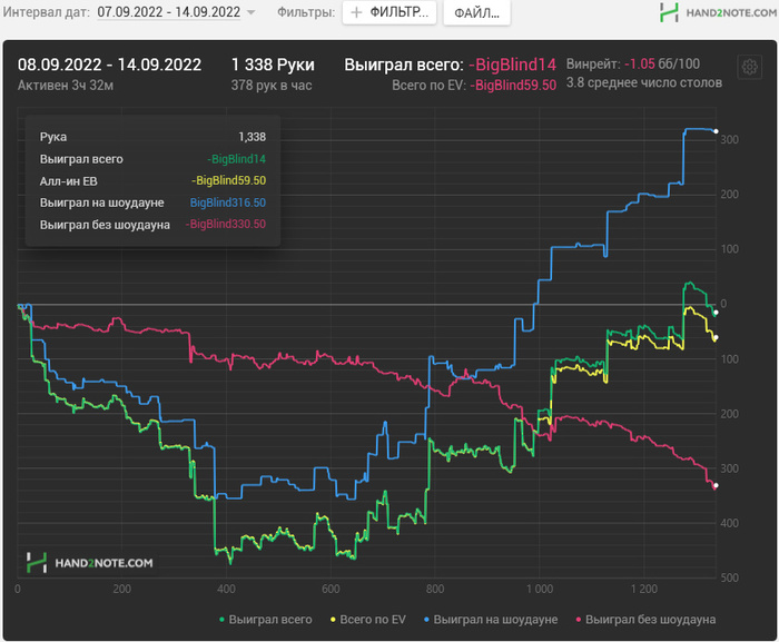 В кэш ситуация получше. Хотя и сыграл гораздо меньше из-за МТТ и домашних дел. Приезд мамы, День рождения сынули - по итогу сыграл меньше, чем планировал, а во вторник уже на работу.