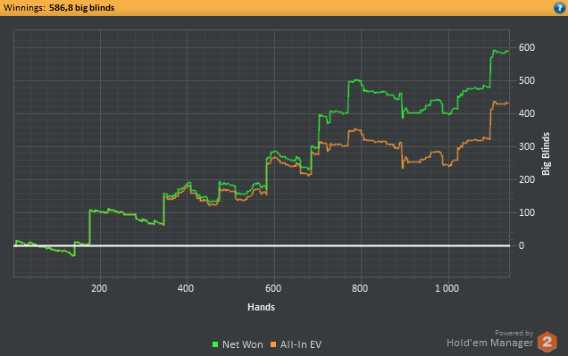 Начала вот так вот, самая заруба была с фишом, который нагнул меня на 400бб, я хз, где так фартожопость можно прокачать, но он унижал всех регов, которые были за столом. Пойду покушаю, да дальше в катку. В конце кстати повезло с КК ушатал АА, а то запарили эти кулера.
