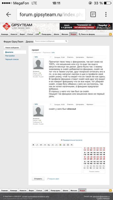 Перед добавлением в скайп пишу/пишите мне какой-то текст в личку на джипси во избежании кидалова." из профиля