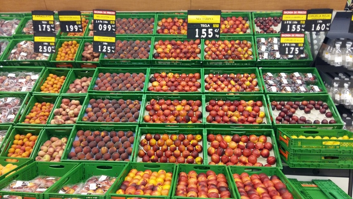 Ну я не в пику меркадоне. Хороший сетевой магазин у дома. Просто даже на фото видно, что там часть фруктов не испанские и выглядят почти как у нас в топовых магазинах. Ну стоят чутка подешевле. Ну вот лимоны, апельсины, яблоки, груши, помидоры, огурцы, нектарины, персики на фото выглядят обычно. А хочется детей кормить, тем что буквально сегодня на ветке висело.