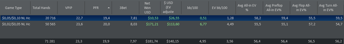 3. 12:00-13:00=60мин | 585 руки | ...6,86.. | 27,6 | 6 с 10 | Comment: Уже лучше заходит, но все равно не так как хотелось бы, отыграл хорошо без грубых и пограничных в одной ситуации спорно как лучше было добирать, а так доволен. +1 стол НЛ10 назад. Texника: без грубых и пограничных, хорошо ; Rating: 6 с 10 . Психология: доволен на хорошем уровне ; Rating: 6 с 10 .