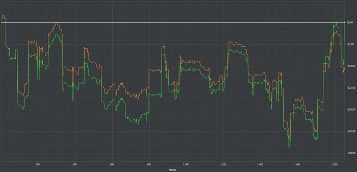 Чё-т странно у тебя. 16-14 с 3-бетом 10 Почему стил не увеличиваешь? 3-бет тоже непонятно почему такой большой, зачем тебе куча лишних маргинальных постфлоп-ситуаций?