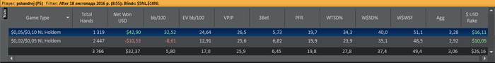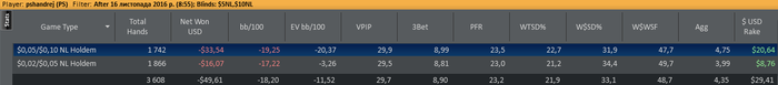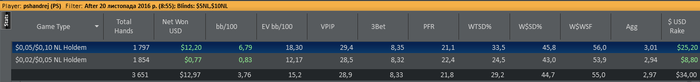 4. 13:20-14:20=60мин | 608 руки | ...-29,12.. | -68,91 | 5 с 10 | Comment: Жопа если коротко… +10$ РБ… Texника: Норм, без грубых…; Rating: 5 с 10 . Психология: Норм, на увроне… ; Rating: 5 с 10 .