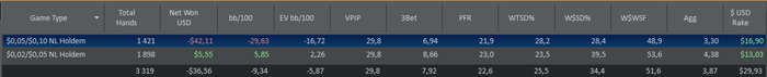2. 10:30-11:30=60мин | 653 руки | ...8,44.. | 0,32 | 5 с 10 | Comment: ДАУН ПЗДЦ, ЗАПАРИЛ УЖЕ… №2 Texника: норм, без грубых… Rating: 5 с 10 . Психология: норм, на уровне… ; Rating: 5 с 10 .