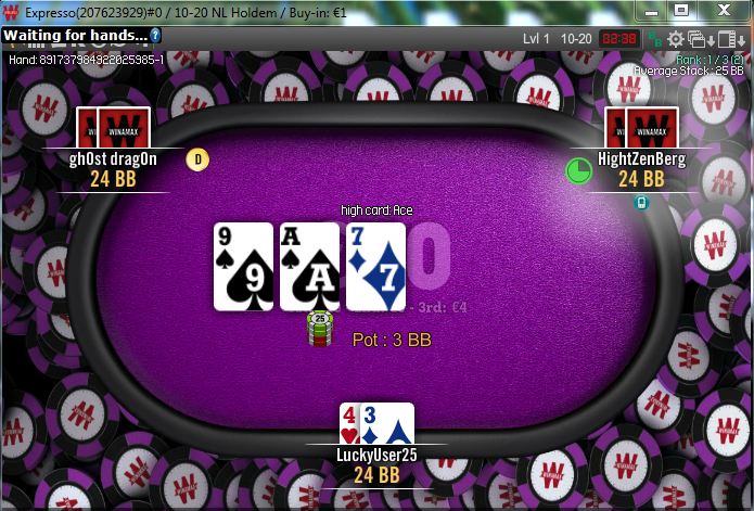 сегодня катал с самого утра и до ночи. начал с мтт, вроде бы всё хорошо складывалось карта заходила стеки росли, появлялись дипраны, но в итоге очередной не доезд вкилополяне и ещё куча разного гэ и сессия на смарку на -$100 вот тот самый не доезд