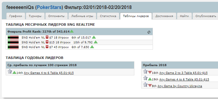 В новом году играю турбо мтснг, начал с 3,5$ и 7$ 18 макс, но трешки оказались слишком жестокими и я решил отключить их заменив пятнашками. Теперь играю 7$ 18-45 макс и 15$ 18 макс. Собственно результаты: Дистанция не большая, много болел, с марта постараюсь отыгрывать больше.