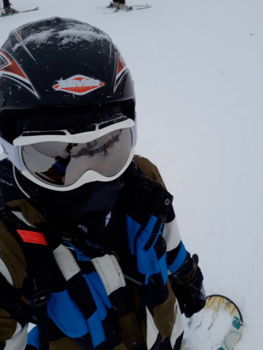 Но не все прошло гладко, как оказалось, я поехал по красной трассе, не хило разогнался и упал лицом в снег. Друг видел со стороны, говорит я не успел выставить руки и отскочил от пола. Когда мы немного прошли вперед пешком, я вдруг понял что не помню как упал и вообще мало что помню. Например держал в руках очки и спрашивал откуда они у меня, друг говорит постоянно повторял одну и ту же фразу думая, что произношу ее впервые. Потерял память минут на 5-10. Очень стремное чувство, тот случай когда шлем ничем не мог помочь. Медпункт искали полчаса, идти надо хрен знает куда от трассы. Врач чекнул мои зрачки и сказал пару дней отдохнуть. Собственно этим сейчас и занят. Ну и вид после падения