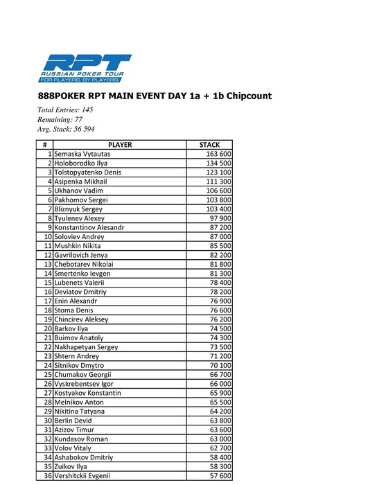 В MAIN EVENT закончился день 1В. Игроки подсчитывают и пакуют фишки. Список участников и чипкаунт будет опубликован позже.
