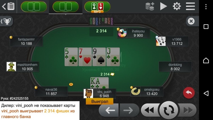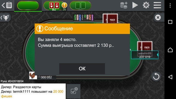 И остался у меня тур за 330. Его один доигрывала, в целом, я довольна собой. НО немного не повезло, ушлепали за 2 раздачи, в одной я была ниже изначально, в другой и последней меня переехали. Как итог