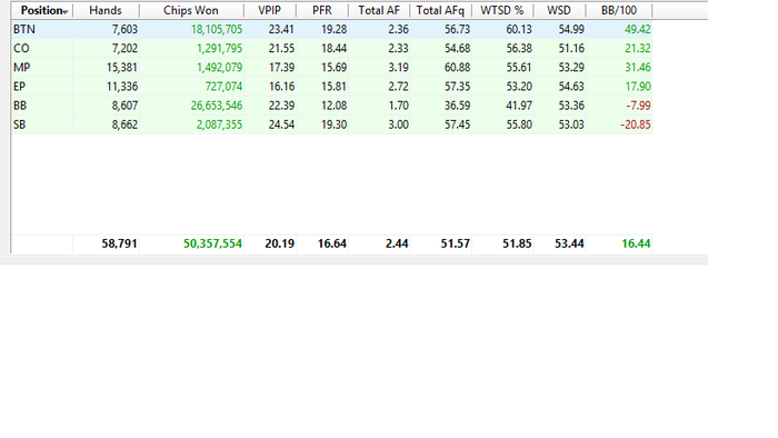 В итоге, я нашел 2 позиции на которых мой винрейт достаточно минусовый - это ББ и СБ, я и давно замечал что совершаю ошибки на ББ, но думал это так, ничего толком не решит, а взглянув на большой дистанции ВР ББ - ужаснулся. (наверное, у всех так?). Да даже если и у всех так, то меня такой расклад не устраивает.