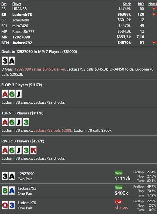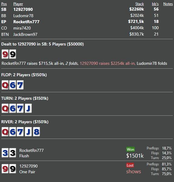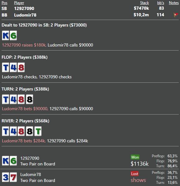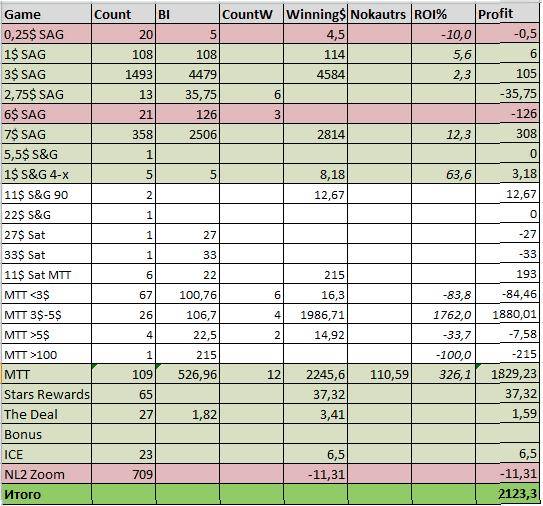 ебанутому красоте добирать с натсом. В итоге еще больше вгоняешься в тильт и в лучшем случае получаешь нулевое дрочево на 50-100 турниров. По моему лучше играть меньше, но качественнее с позиции теории. Надо в следующем месяце пересмотреть подход. Начать разбирать линии с позиции силы.