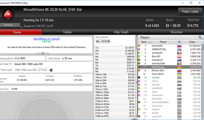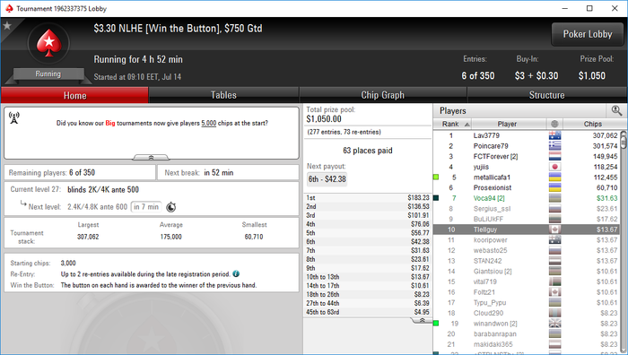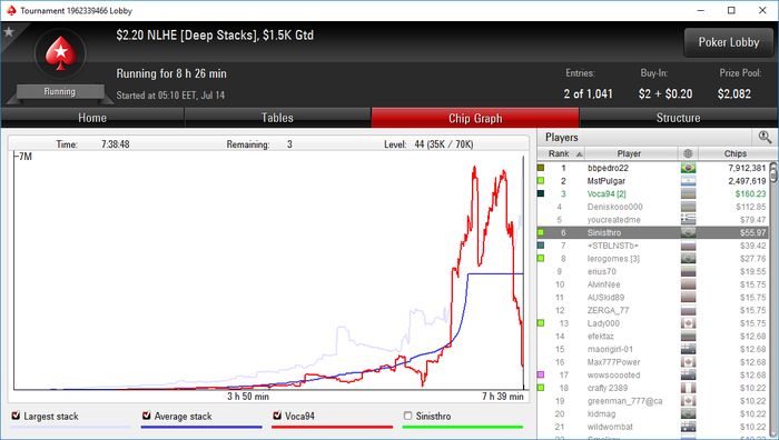 Последний на сегодня турнир..Сегодня хорошый плюс, ето уже найс, очень устал, постепенно вхожу в режым... ещо раз убедился что нужно очень много роботать над игрой. Много глупых ошибок допускаю.