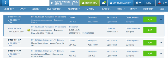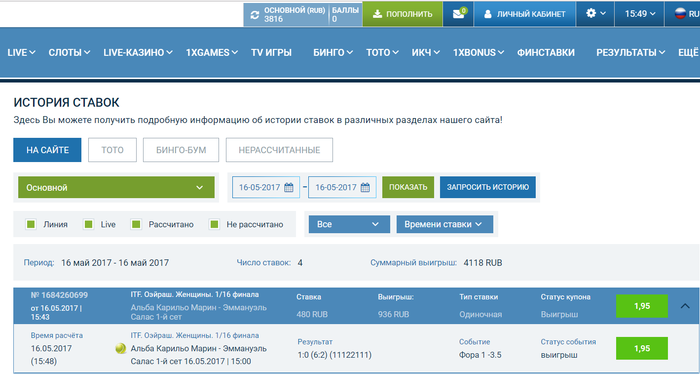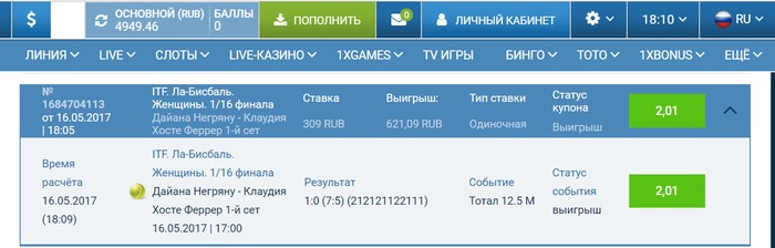 привет, интересный блог, слежу. Тоже ставлю на 1хбете, раньше минусовал, щас в плюс выхожу постепенно, проблем с выводом ниразу не было) сегодня так полайвил: