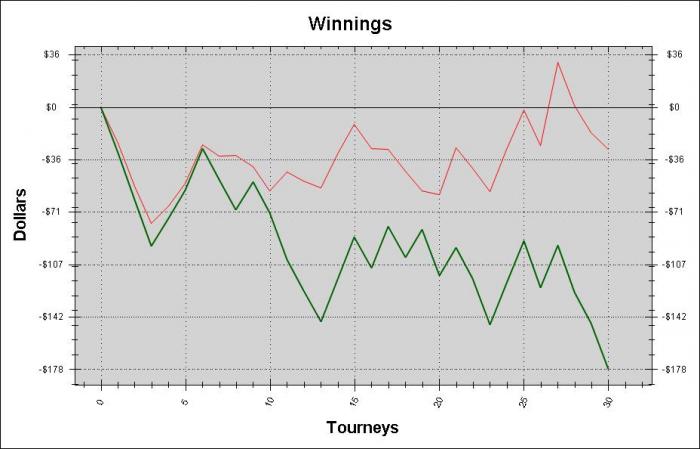 1. Опп-дебил. В начале матча еще держал себя в руках, но потом участились 3-беты, овербеты флопов и т.п. шляпа.