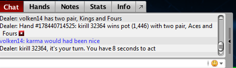 Pre Flop: (pot: 1.5 BB) kirill 32364 has