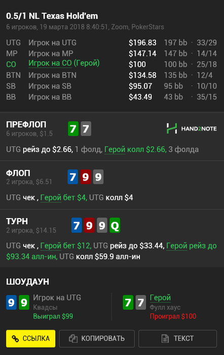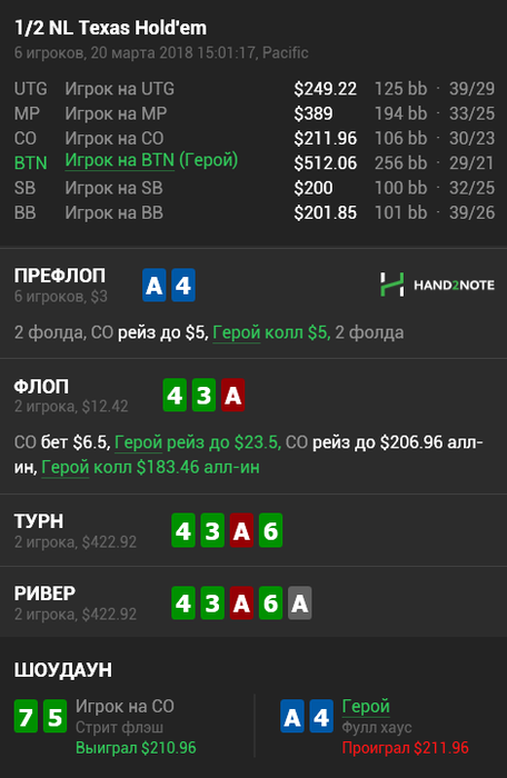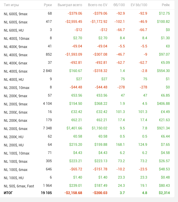 SANTA88188, да , на ФРге можно играть с 2 фишами , да и 1.5бб ты платишь за 9 рук и не за 6 , в целом я думаю что винрейт должен быть выше , но надо хоть немного понимать игру ФР . По ощущениям игра там тайтовей , поэтому могут чаще возникать ситуации где ты переигрываешь свою руку посмотрел свой винрейт на ФР за этот год , дела намного лучше чем наСХ