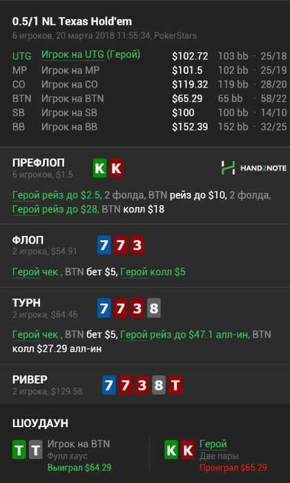 ещё один день прошёл , значин на день меньше стрика осталось К этому ещё надо добавить когда мне приходилось скидывать сильные руки к риверу , ну само собой мой блефы редко проходили , и с сильной рукой обязательно попадал в доминацию , ещё два раза выставился с АА в АА . не каждый месяц такое увидишь , а тут за день два раза . Вот вам и рецепт моего стрика