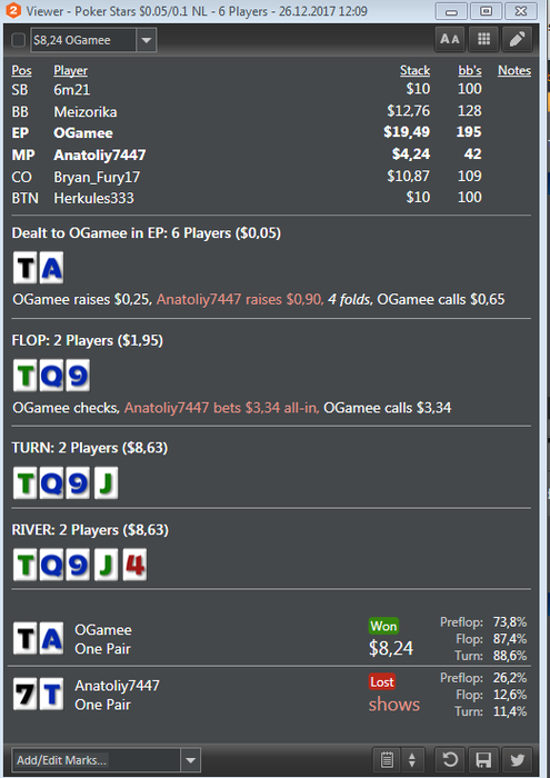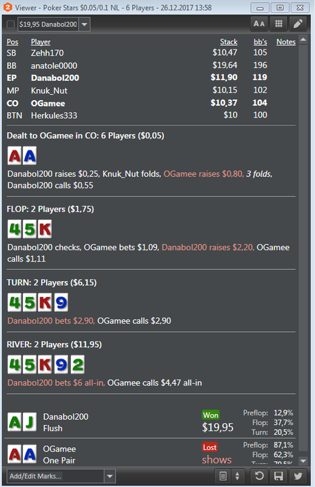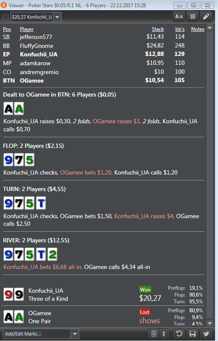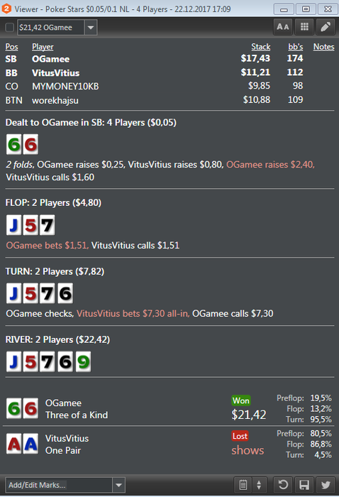 OGamee @ 22.12.2017 Дикая раздача где оп зае..л меня своими 3 бетами , ну и тут я нарываюсь на тузов...Переапыш блять