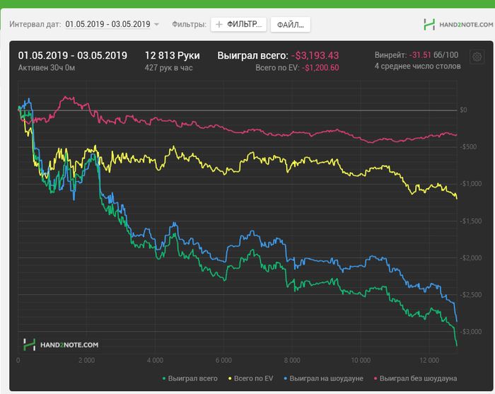 Punzzzer, тоже в этом месяца столкнулся с сильным даунстриком... в итоге сильно начал пропадать интерес к катке и стал мало очень играть, хотя изначально планировал установить свой рекорд по часам катки... в такие моменты хочется реально прибухнуть, чтобы отстранится от плохих мыслей, которые постоянно лезут в голову, даже когда не уделяешь время покеру )