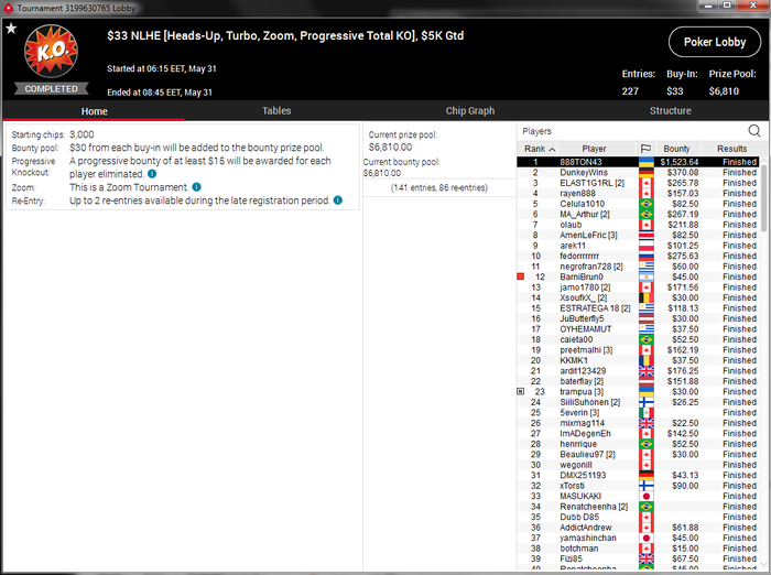 Дальше поиграл ещё, прыгнул в мейн ($700 на секундочку), ещё в турики. Но все проиграл, даже не ИТМнулся больше нигде. По итогу +7К по игре и +6К чистыми (за вычетом гостинницы и питания).