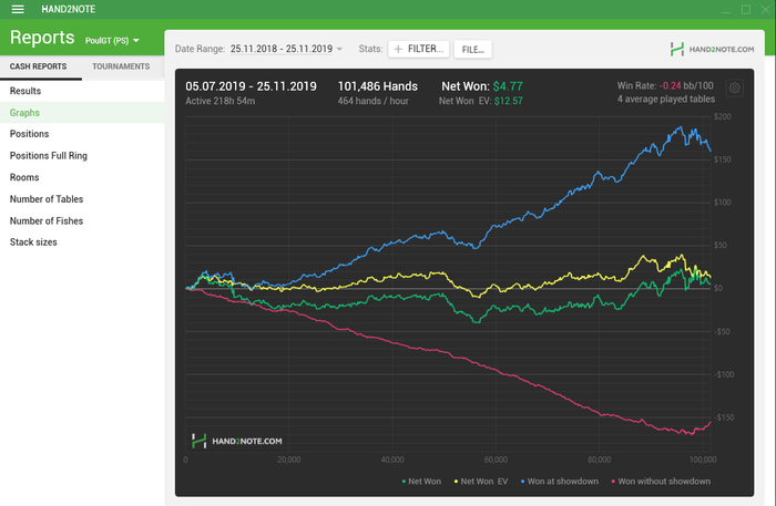 Следующим шагом вижу чуть глубже ознакомиться с теорией (лучше просто перечитать книги, узнаю много нового) и расширить свои диапазоны под чуть более лузовую игру, а затем наработать дистанцию и уже выйти на уровень банкролла NL5. NL2 как я понял проходят на математике, поэтому и делаю упор на неё, а не на подстройку под оппонентов. Ежедневно дисциплинированно разбираю хотя бы по одной раздаче, чтобы наработать привычку, но чувствую, что даже одна хорошо разобранная раздача в день очень много дает! Особенно, если сформулировать конкретный вопрос, который не понимаешь и найти ответ. Всем удачи и позитива!