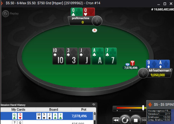 7) Почувствовал себя в роли гриндера, максимальное количество одновременных столов достигло 19 Сегодня поймал апстрик, выиграл 4 билета по 55$ на серию, было много дипранов, складывалось действительно хорошо, в стрике это как глоток свежего воздуха.