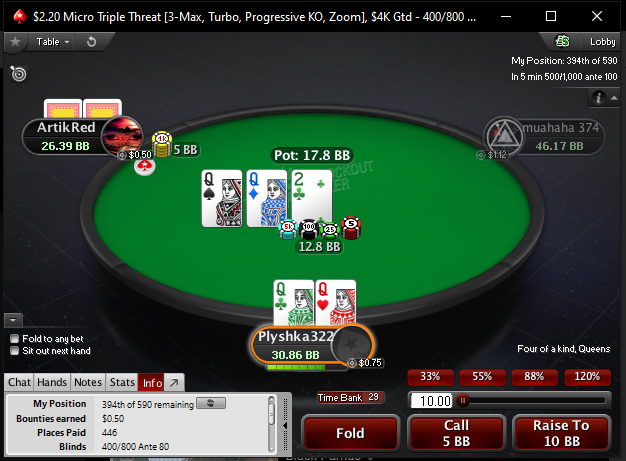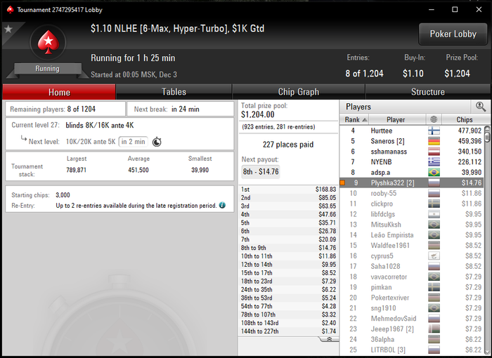 KozhevnikovR, пуш фолд думаю, что знаю достаточно хорошо для снг, с icm немного сложнее, но разбираюсь потихоньку. Если это о чем то говорит - по ев графикам в плюс играю. А вообще да, я хотел сначала сесть играть 1$ снг не турбо. Но потом думаю, дай просто прочувствую пока что на 0.5$ турбинах