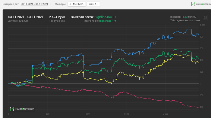Октябрь для меня оказался странным, Я играя в свою как мне казалось дефолтную игру , даже считая что я где-то, что-то улучшаю на самом деле было иллюзией !!! Первый мой значительно большой по кол-ву дней отпуск в Сентябре, длительностью в месяц скорее всего повлиял на этот результат. По крайней мере мне хочется так думать . Не хочу показаться юным максималистом , но скорее всего мои слова прозвучат так для читателя . Попробую убрать шаблонную игру которую навязались мной черпая инфу из школ и из стримов и попробую поиграть в эксплойт чуйка покер пока не почувствую уверенность в себе !