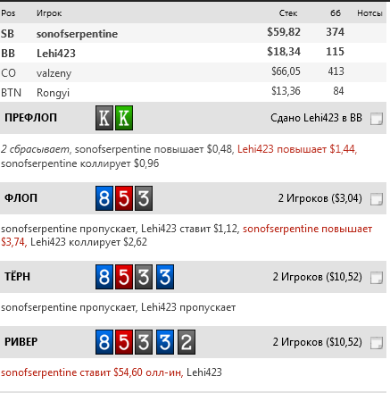 Опп 23/16 3-бет вс БТ 11 Фолд на 4-бет 45, 5-бет СБ 4(10)
