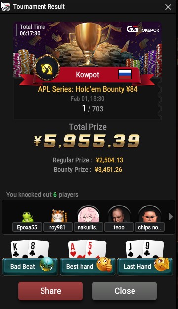 APL Series Hold’em Bounty 84 - 2 место