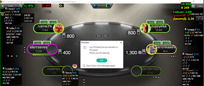 Я решила не упираться, но газовать. Ну не заходят мне мт снг, плохо я их играю, пора проявить гибкость. Не исключено, что образовавшийся минус связан с тем, что столы загружаются только после 12 ночи по нашему времени. Пересмотрю-ка я свою турнирную сетку и отношение к БР.