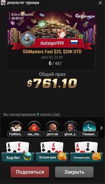 На гг поля нитовые слишком, не блефуют совсем, постоянно натсы показывают. На нем нужно подстраиваться.