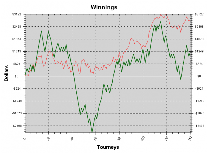 День 3 -"For anyone playing supers there is a guy who thinks he is some kind of reg but is pretty bad. "iseethroughyou" " - цитата про меня с 2+2.: Всем еще раз по привету!Битвы с регами продолжаются,челлендж набирает обороты. Всего сыграл сегодня 140игр(+1190$),в рамка вызова состоялось 85 поединков,в 49 я одержал победу, в 36 встречах пришлось признать поражения.По деньгам 3-ий день Challeng'a завершился в +3493$.(Но Роберт Романелло мне помог закончить день с более скромной цифрой). Сегодняшние результаты поединков: 1)im vs 16colordeck - 24:9 (+3953$)(1.5К перебор) 2)im vs ShaneO19 - 4:3 (+175$)(все игры на 200ках,по ЕV - 1БИ). 3)im vs DONT STAKE ME - 3:3 (-27$) (по ЕV +2 БИ в мою) 4)im vs I just LOLd - 9:6 (+1284$) (по ЕV 400$ перебрал) 5)im vs HosniMubarak - 0:1(-203$) (по ЕV моё) 6)im vs g1shot - 6:5(+161$) (по ЕV наоборот) 7)im vs Plz_Stop_Lookin - 2:4(-724$) (По Ev уступил на 1БИ меньше) 8)im vs knickadam55 - 0:2(-710$) (По ЕV ничья). 9)im vs bartchalker - 1:2(-213$) (По ЕV +100$ в мою) 10)im vs JosselTheKiller - 0:1(-203$) (По ЕV 1-0 в мою,QQ < 76)