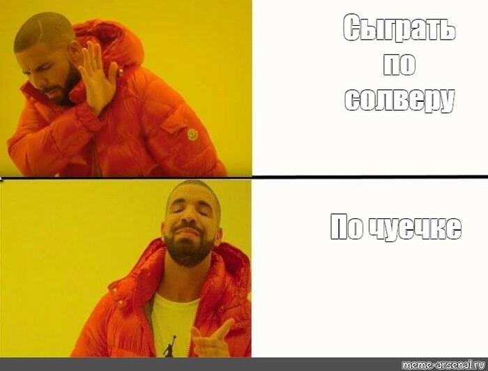 А 8-9 или 10-10 тоже хочется колить, но часто выйдет оверкарта и верным действием будет скорее ререйз. Но что делать на пуш/переставление от оппа. Как часто он должен пушить/переставлять в ответ с худшими картами и должен ли. Если это не фд доска особенно. Интересно как солвер играет. Буду благодарен за ответ.