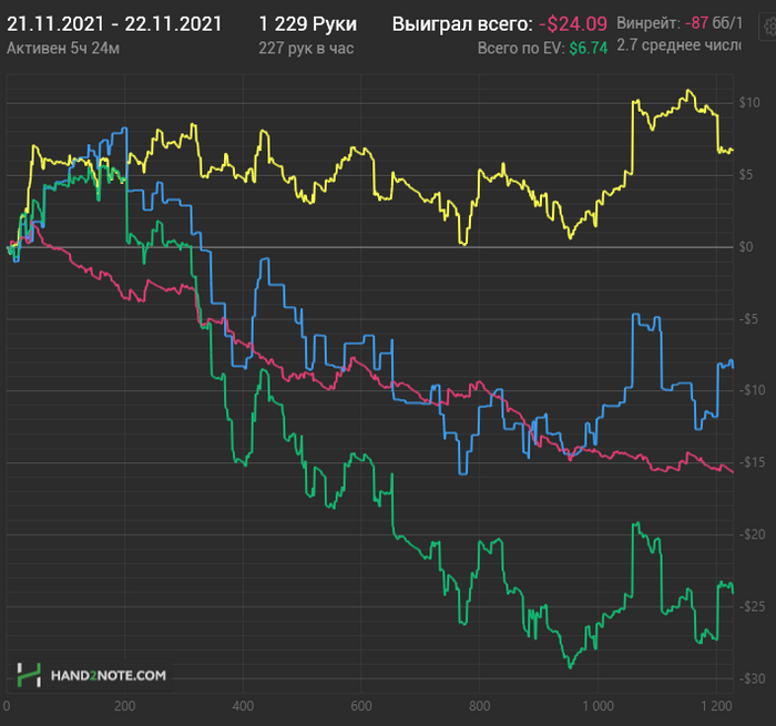 Подведу какие то итоги. За 2 месяца получилось с нл2 вывести около 1300 долларов. Что тот потратил, но 1100 долларов на специально заведенной для покера карте, остался. Могло быть и лучше, если бы не залудил 400 долларов. Бонусные деньги отмыл, поставил все на вывод. В данный момент покер начал мешать повседневной жизни, сбился график, бегаешь по ночам за китайскими, устаешь, весь день как зомби. Надо привести дисциплину в порядок, а потом играть.
