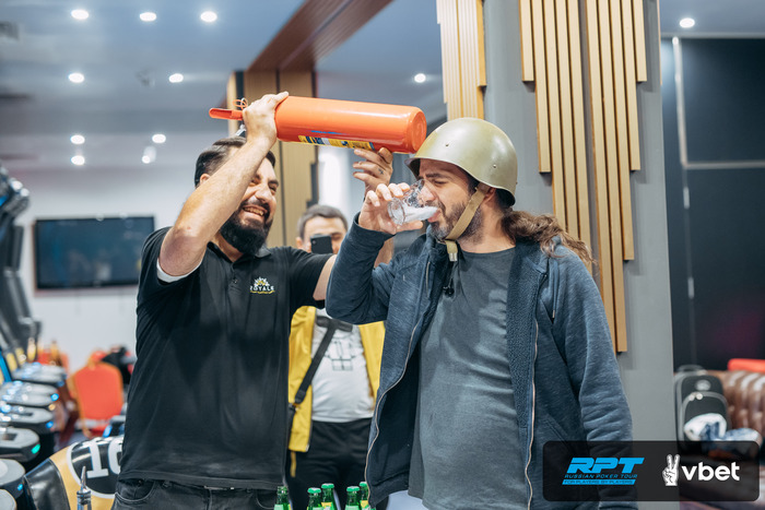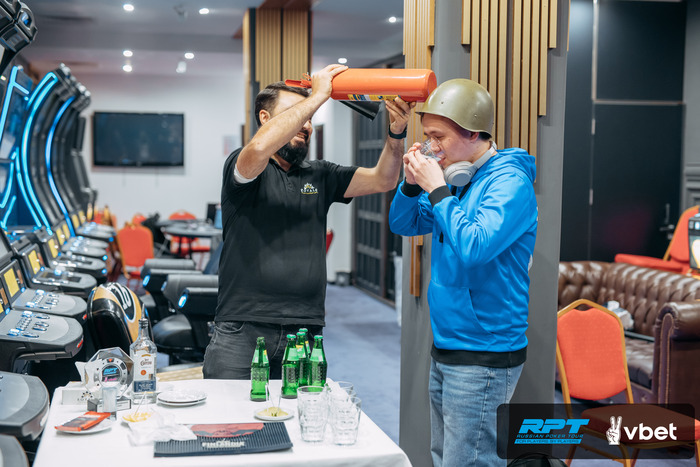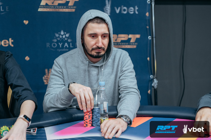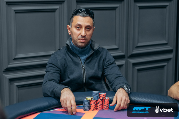 Теперь в числе отстающих Сароян, который несколько раз уже предлагал сыграть с ним на все шашки, но пока никто не поддержал. Чельцов и Панасюк чувствуют себя вполне комфортно, Несиев уже расписал всем план своей победы и ждет ключевую раздачу, постоянно предупреждая об этом своих соседей по столу))