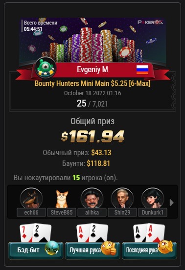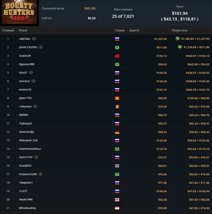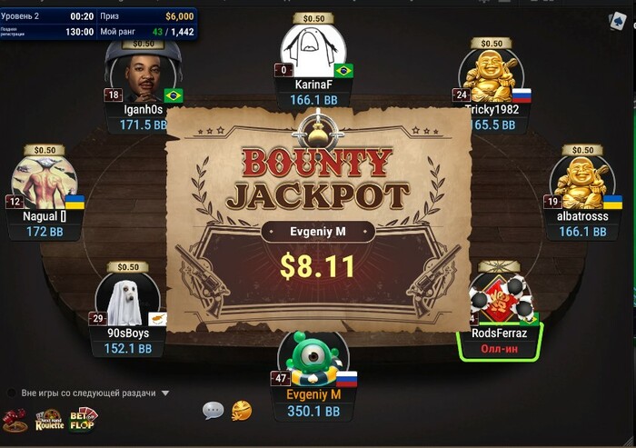 За первое было на 10 долларов больше , противник принимал на мой взгляд правильные решения , и когда он об меня удвоился поделили пополам )