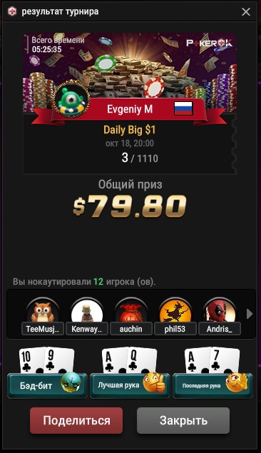 Покерок начинает нравится)) 2 раза подряд так дал , я уж подумал щас 100к бахнет )))