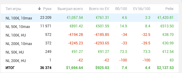 Из достижений: первый месяц в карьере где я отыграл на nl100 больше рук чем на nl50. Здесь я собой горжусь.