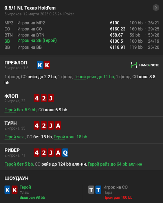 пс: напоминаю ев линия не актуальна уже в ipoker если берут кешаут против вас.