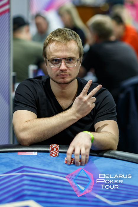 Владислав Цой сыграл 3-бет пуш 465к с малого блайнда с в открытие Олега Жигалина. Жигалин заколлировал с и устоял.