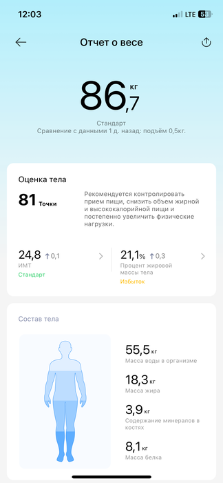 Я набираю вес: уже 87 кг, и меня раздувает.