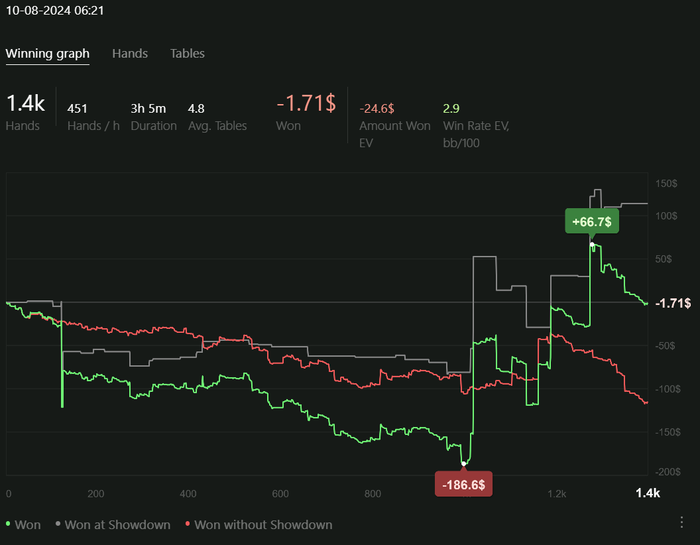 Правда, заметил, что увеличенный уровень энергии делает меня более раскованным в погоне за профитом в покере, и я на ранних улицах разгоняюсь, но на поздних, опомнившись, что не готов играть так дисперсионно и агрессивно, даю по тормозам.