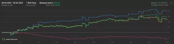 Начало более чем позитивное. Почти 5 часов игры пролетели незаметно. Впервые за долгое время я подряд отыграл в кеш столько времени. Обычно 3 часа и перерыв.