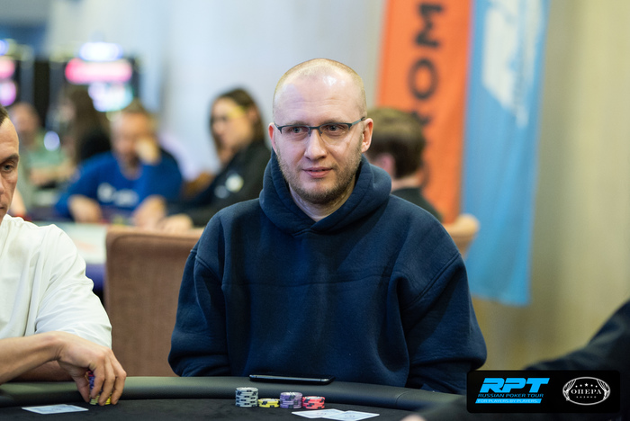 Евгений Ражко оказался на блайндах в префлоп олл-ине, из ранней Евгений Плякин с коротышом 6,200 зарядил олл-ин, до катоффа в лице Артема Батсяна все сфолдили, тот свой олл-ин 15,200.