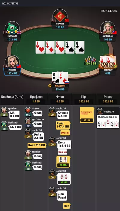 NetAgent, может стоило брать кешаут, если едешь от 70% и выше против оппа? Да, теряешь часть банка, но зато всегда выигрыш и банкролл не так проседает. Я почти всегда беру кешаут.